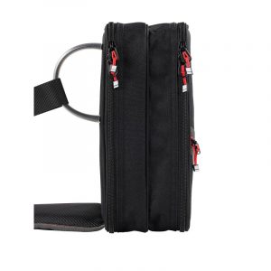 Smart design med dubbelsidig öppning så du kommer åt betesaskarna utan att ta av dig väskan