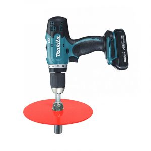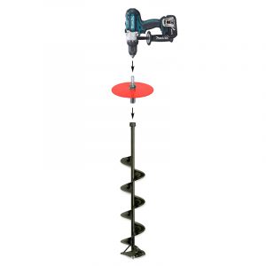 Adaptern är försedd med en skiva som är 170mm i diameter, som ska förhindra att borret försvinner ner i vattnet om det lossnar från skruvdragaren.