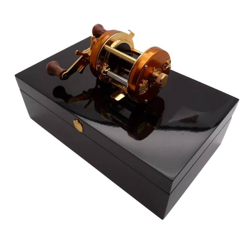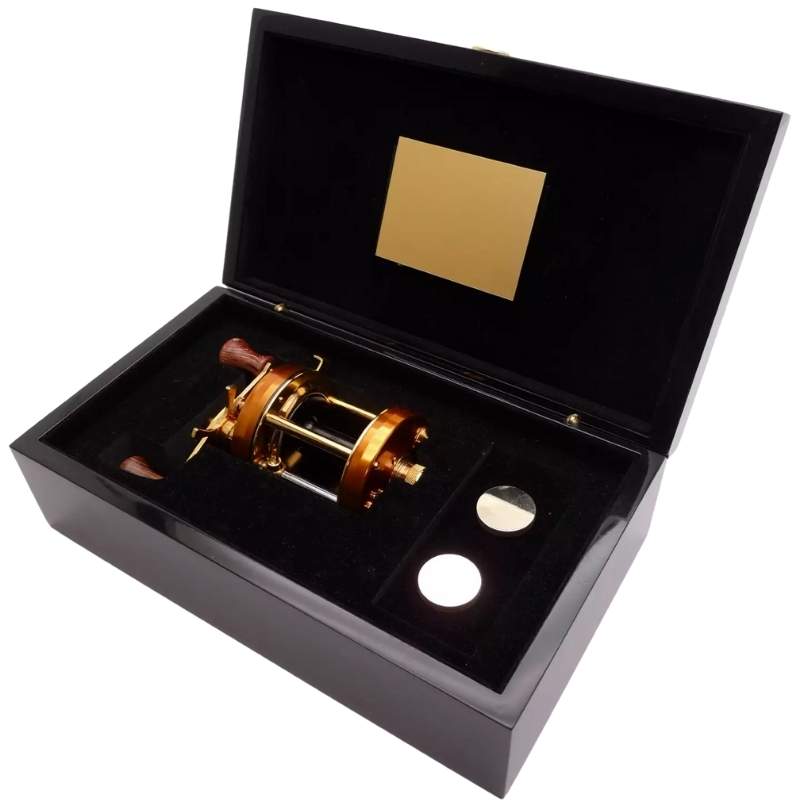 Rullen utmärks av sina sobert kaffefärgade yttergavlar, detaljer i guld och en finish som andas tidlös kvalitet. I boxen medföljer dessutom två guldpläterade medaljonger som markerar startåret 1952 och slutåret 2025 – en tydlig symbol för slutet på en epok inom sportfiskehistorien.