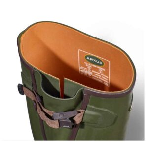 Stövelns inre konstruktion är likvärdig med Arxus modell Primo och ger samma stöd och komfort under vandring. Modellen har en infälld reglerbar kil i skaftet som dras åt till önskat vadmått med en justerbar spännrem med ett metallspänne som effektivt håller remmen på plats.