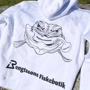 Våran egna Bengtssons Hoodie som vi designat ihop med Wolfcreek Lures. Vit är färgen som symboliserar oss på Bengtssons Fiskebutik och tillsammans med Wolfcreek som vi ofta fiskar med blir denna Hoodien en perfekt fisketröja eller varför inte använda den som snygg-tröja?