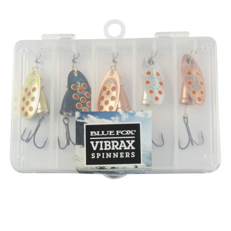 Blue Fox Spinnerbox Vibrax 5pcs är en komplett betesbox med fem utvalda Vibrax- och Vibrax Bullet-spinnare i effektiva Hot Pepper-färger. Det här är en perfekt startbox för dig som vill ha beprövade spinnare för abborre, gös och gädda – samlade i en praktisk förpackning.