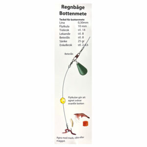 I detta mångsidiga bottenmetetackel finns lina, tyngd, sylvass trekrok, liten flytkula och praktisk vinda att snurra upp allt på, samt lekande, beteslås och tre extra enkelkrokar i olika storlekar efter tycke och smak!