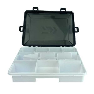 Daiwa D-Box Small Standard är en mindre betesbox med 4,8cm invändigt djup. Den har fasta längsgående avdelare och flyttbara korta avdelare. Daiwas nya sortiment av beteslådor D-BOX, har designats och utvecklats för att leverera ett komplett utbud av specialbyggda förvaringsmöjligheter som passar perfekt för den moderna sportfiskaren. Tillgänglig i en mängd olika storlekar och djup, Daiwas D-BOX-serie är tillverkad av återvunnen polypropen, ett lågpåverkansmaterial som inte ger något giftigt avfall, inga utsläpp, inga fluorkolväten och inga halogener i processen. Alla Daiwa D-BOX har fyra lås för att säkerställa säker låsning och för att helt komprimera den vattentäta packningen som sitter runt locket på alla D-BOX-modeller. Varje box har noggrant utformats för att maximera lagring och för att passa en mängd olika fisketyper.