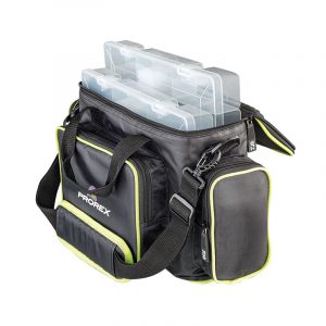 Daiwa Prorex Tackle Box Bag Medium från Daiwa levereras med 2 st betesaskar i storlek 35,5×22,5×4,5 cm (samma storlek som Planos 3700) – idealisk förvaring för många olika betestyper. Frontfickan och båda sidofickorna ger utrymme för småprylar och nödvändigheter. Förstärkt botten förhindrar fuktintrång underifrån och väskans yttre material är vattenavvisande.