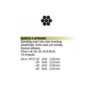 Darts 7-Strand Wire är en sjutrådig svart wire utan överdrag. Extra mjuk och smidig. Mycket slitstark.
