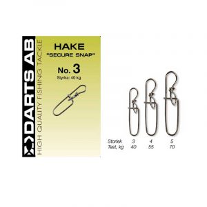 Darts Hake Secure Snap är ett mycket populärt och starkt beteslås till spinnfisket. Väldigt populär bland de som gör egna tafsar till gäddfiske med mera. Secure Snap är även ett mycket bra val till havsfisket.