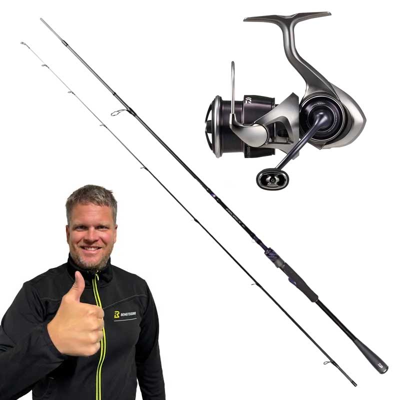 Här kommer Elias Abborrecombo! När Elias fiskar på tävlingar brukar hans favoritkombo bestå ut av följande: En Daiwa 25 Caldia LT 2500 Haspel & ett Daiwa Prorex AGS 702MHFS 7′ 7-32g Haspel – Universal Power!
