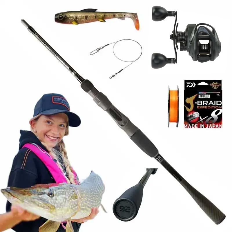 När vår ambassadör Ellie fiskar gädda, då är det kraft, kontroll och känsla som gäller. I Ellies Gädd Kombo får du en komplett utrustning som är framtagen för att kasta stora beten och hantera riktigt grov gädda – utan att kompromissa.