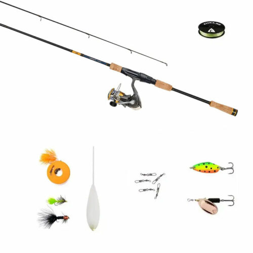 Fiska.nu Regnbåge Set 1 är ett paket med allt du behöver för att komma igång med ett effektivt fiske efter Regnbåge, med metoderna spinnfiske och fluga. Regnbågslaxen kan vara tacksam att fiska efter men samtidigt väldigt lynnig och selektiv i sitt val av föda, i detta paket har vi valt att ta med lite av allt.