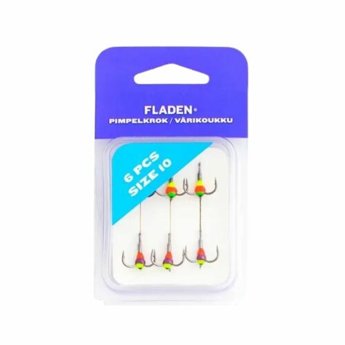 Fladen Pimpelkrok 6-pack är ett praktiskt set med sex färdiga limkrokar, helt redo att användas direkt vid pimpelfiske. Ett perfekt val för dig som vill spara tid och slippa knyta egna krokar eller rigga med garn innan fisket.