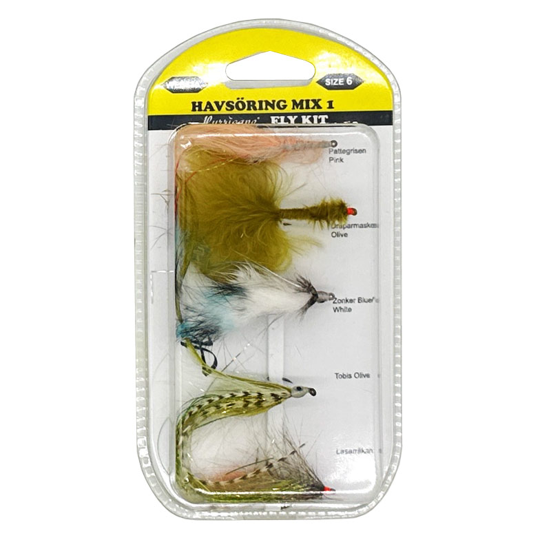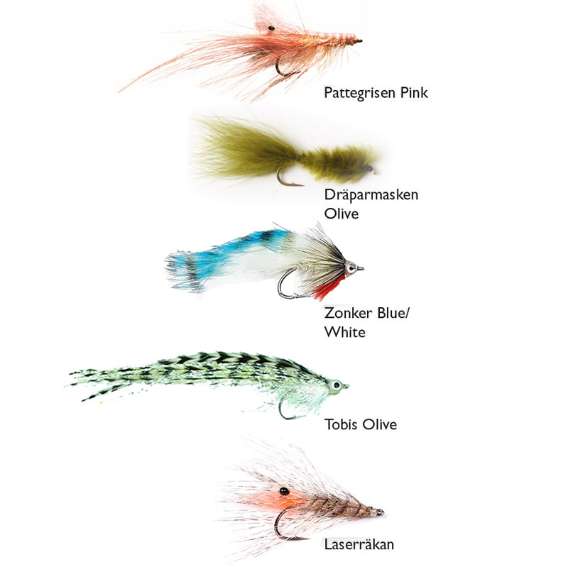 En utvald mix av riktigt populära flugor till kustfisket efter havsöring. Klassiska mönster som är väl beprövade längs våra kuster. Flugorna är bundna av högkvalitativa flugbindningsmaterial på kvalitetskrok.