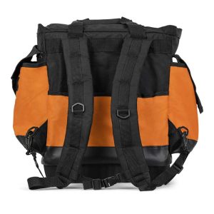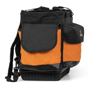 Invändig hink och lock i slagtålig plast. Själva väskan har en hård vattentät botten som inte glider på underlaget. Dessutom är resten av väskan i stort sett vattentät. Detta hindrar effektivt isbildning på tyget. Vadderade bärremmar som sitter med karbinhakar nedtill. Kan därför enkelt knäppas loss och stoppas inuti en ficka för att inte vara i vägen.