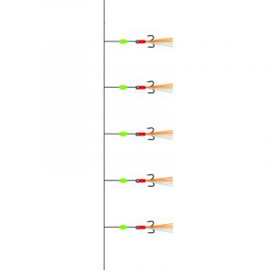 Häckla med trekrok strl 12 har 5 stycken fjäderbeklädda trekrokar. Framför krokarna sitter det en självlysande pärla för att locka extra mycket. En mycket mångsidig häckla till allt från abborrefiske, sik, strömming och sill. Storlek 12 är en liten krok, c:a 10mm från krokspets till krokspets.