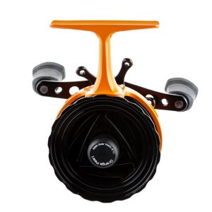 IFISH IZE Orange Pearl. Isfiskerulle i kompositmaterial med lång fot. En mycket avancerad rulle med 5 kullager och frikoppling av spolen, finjusterbar broms, knarrfunktion. Vänstervevad. Utväxling 2.7:1. Vikt 170g. Linkapacitet 150m 0,20mm.