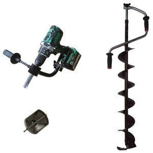 Man kan enkelt ta bort veven och montera en adapter på detta isborr och därmed driva det med skruvdragare. Eggskydd ingår.