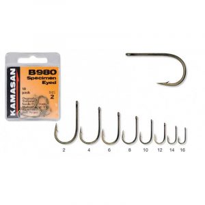 Kamasan B980 – Specimen Eyed är metkroken nummer ett! Används till allt från laxfiske till mete med mask och majs. Vår mest sålda krok.