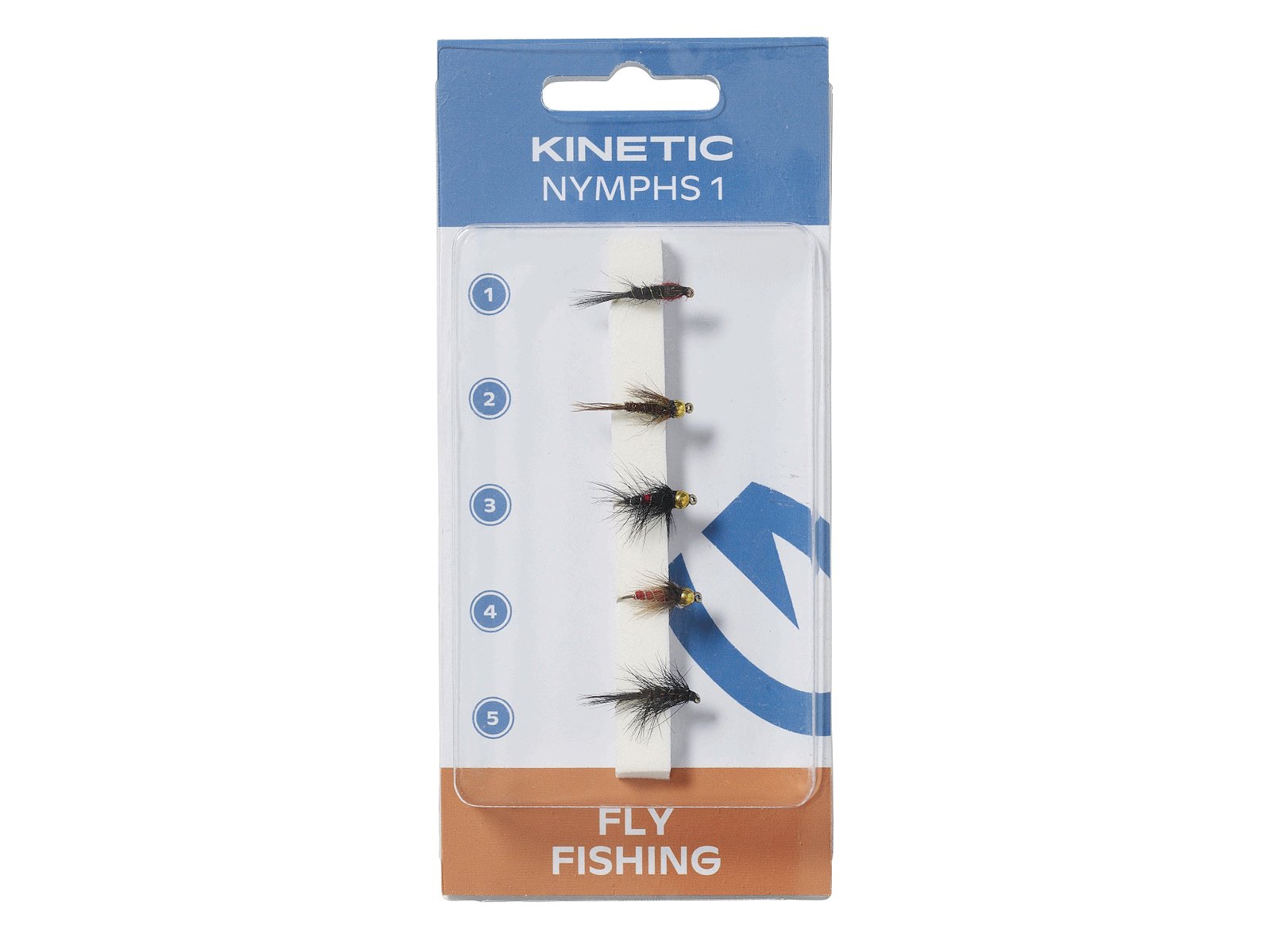 Kinetic Nymph Flugor 1 är ett 5-pack med några av de mest beprövade och effektiva nymfmönstren för fiske efter öring och harr. Dessa flugor kan användas under hela året och imiterar naturliga byten som nymfer, larver och andra vattenlevande insekter som fisken söker under ytan.