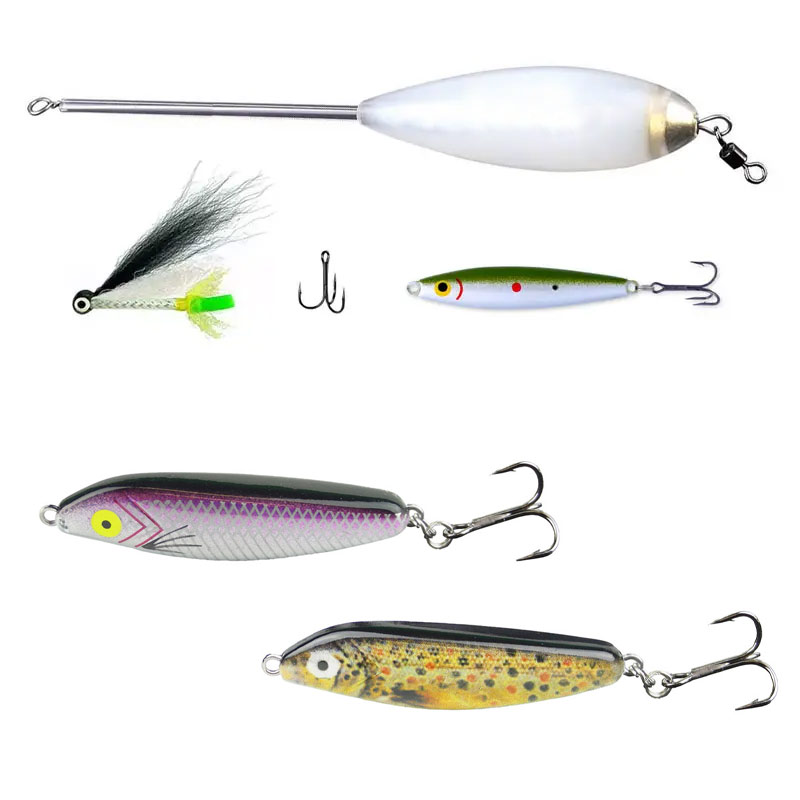 I det här paketet får du beten och tillbehör så att du kan fiska både med drag och med kastdobb.