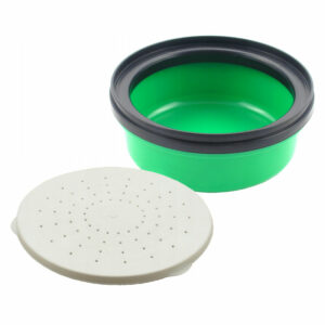 Maskburk av stadig polypropylene-plast, med UV-skydd och extra ring runt kanten för att förhindra rymning. Perforerat lock. Diameter 118mm, höjd 63mm.