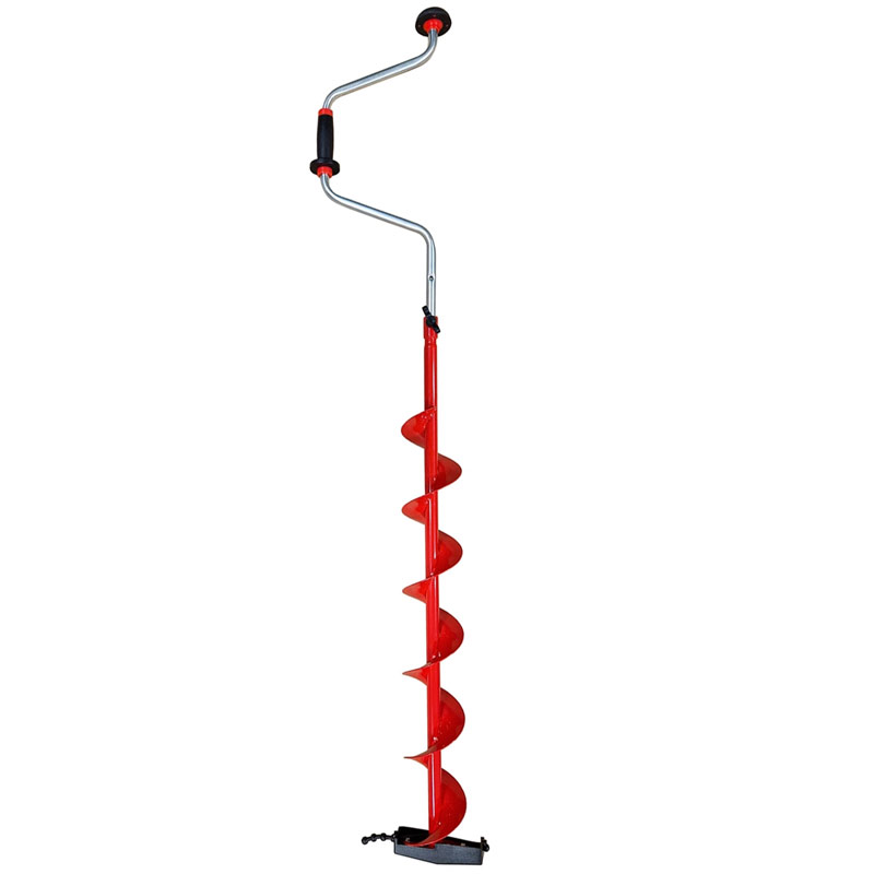 Det teleskopiska handtaget ger både komfort och justerbar längd för olika situationer, och den röda finishen gör borren lätt att hitta i snö och packning.