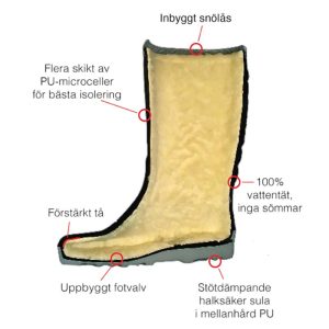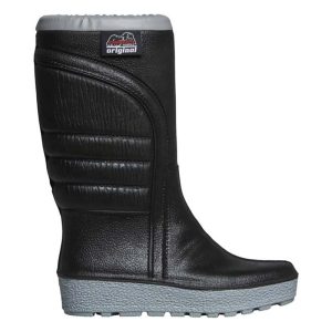 Powerboots Original – Nordens mest sålda värmestövel. Uppbyggd av det patenterade materialet PU som består av miljontals slutna luftceller i tre olika skikt med olika cellstorlekar samt en heltäckande innerdel bestående av tjock och varm acrylpolyesterpäls. Detta är originalet som har marknadsförts i Sverige, Norge & Finland med stor framgång. Produktens förträfflighet upptäcktes först av snöskoterfolket, men har i dag fått starkt fotfäste hos jägare, fiskare, yrkesfolk med flera. Såväl tuffa testförare som ”vanliga” kunder är eniga i slutomdömet -POWERBOOTS ORIGINAL- stöveln är det varmaste man kan ha på fötterna! Finns i storlekar från 29 till 48. Originalet, testad ner till -30 grader C, halkskyddade sulor, fodrad insida, 100% vattentät, inbyggt snölås, kevlarförstärkt tå.