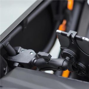 Den runda basen innehåller branschstandardens universella AMPS-hålmönster, som kan att anslutas till en stor mängd RAM-hållare och tredjeparts hållare. Fästet är designat med ett RAM-patenterat kulledssystem med 1,5″ / 3,81 cm kulor i diameter, som har justeringspunkter i båda ändarna av den armen, vilket möjliggör nästan oändlig justering.