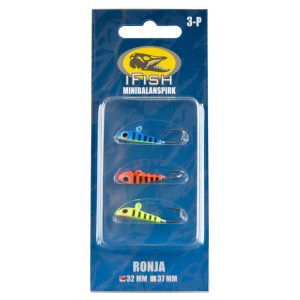 Ronja Minibalans 3-pack 32mm. Minibalanspirk som är mycket effektiv för fiske efter abborre och ädelfisk. Ett tips är att dunka den i botten, variera mellan små och större rörelser och gör pauser. Agnas med maggot. Innehåller 3 balanspirkar i olika färg. Längd 32mm. Vikt 3g.