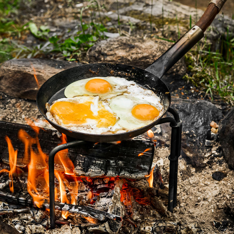 Stabilotherms Jägarstekpannor tillverkas i Sverige av kolstål. Materialet lämpar sig bra för användning vid lägereld då det tål höga temperaturer. Ju mer du använder din panna desto bättre stekegenskaper kommer den att få. Inspirationen till våra Jägarstekpannor går långt tillbaka och kommer från den gamla nordiska maträtten kolbulle. Den lagades i stekpanna av rallare, kolare, skogshuggare och andra kroppsarbetare som jobbade långa perioder utan tillgång till färska råvaror. Våra stekpannor började tillverkas i Småland på 1980-talet och är idag ett uppskattat redskap hos jägare, fiskare och friluftsmänniskor.