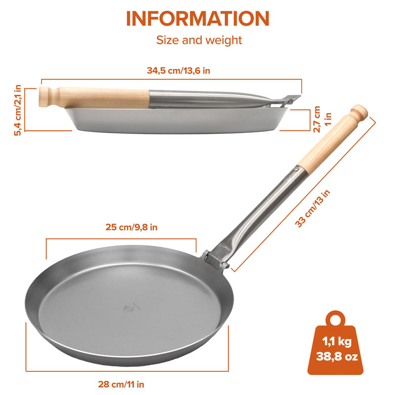 Jägarstekpannan original S4, är den största modellen i serien av Jägarstekpannor. Den generösa storleken gör den till en favorit när flera hungriga munnar ska mättas. Trots sin storlek är den enkelt att ta med sig, tack vara det fällbara handtaget. Denna modell är utrustad med ett fällbart skaft och ett handtag i björk, som gör det extra bekvämt att hålla i.