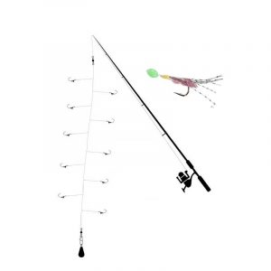Strömmingshäckla Sabiki Rig 10 krokar är en häckla för fiske efter sill och strömming. Att fiska strömming är en av de absolut enklaste lättaste metoderna om man vill ha fisk. Häcklan är sista biten som du sätter längst ut på din lina. Den består av en lina med tio krokar. Häng på en tyngd i änden och kasta ut. Sen väntar du tills det rycker i linan. Som tyngd kan du använda ett päronsänke eller en jigg med jigghuvud.