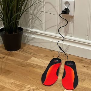 För att ladda sulorna kopplar du in det medföljande micro-USB-kabeln på sulan och sätter kontakten i vägguttaget. Sulorna indikerar laddningsstatus genom blinkande ljus och är fullt laddade när det blinkar grönt. Sulorna är enkla att underhålla och rengörs enkelt med en fuktig trasa. Tänk bara på att sulorna måste vara helt torra innan du sätter på värmen igen.