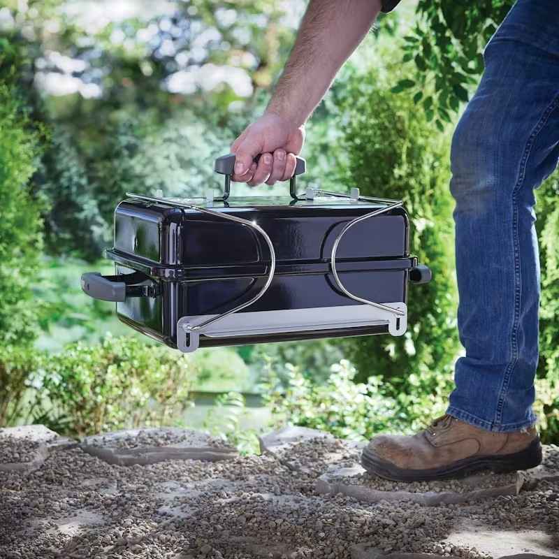 Weber® Go-Anywhere är en kompakt kolgrill som är lätt att ta med, enkel att förvara och perfekt för camping, picknick eller utomhusevenemang.